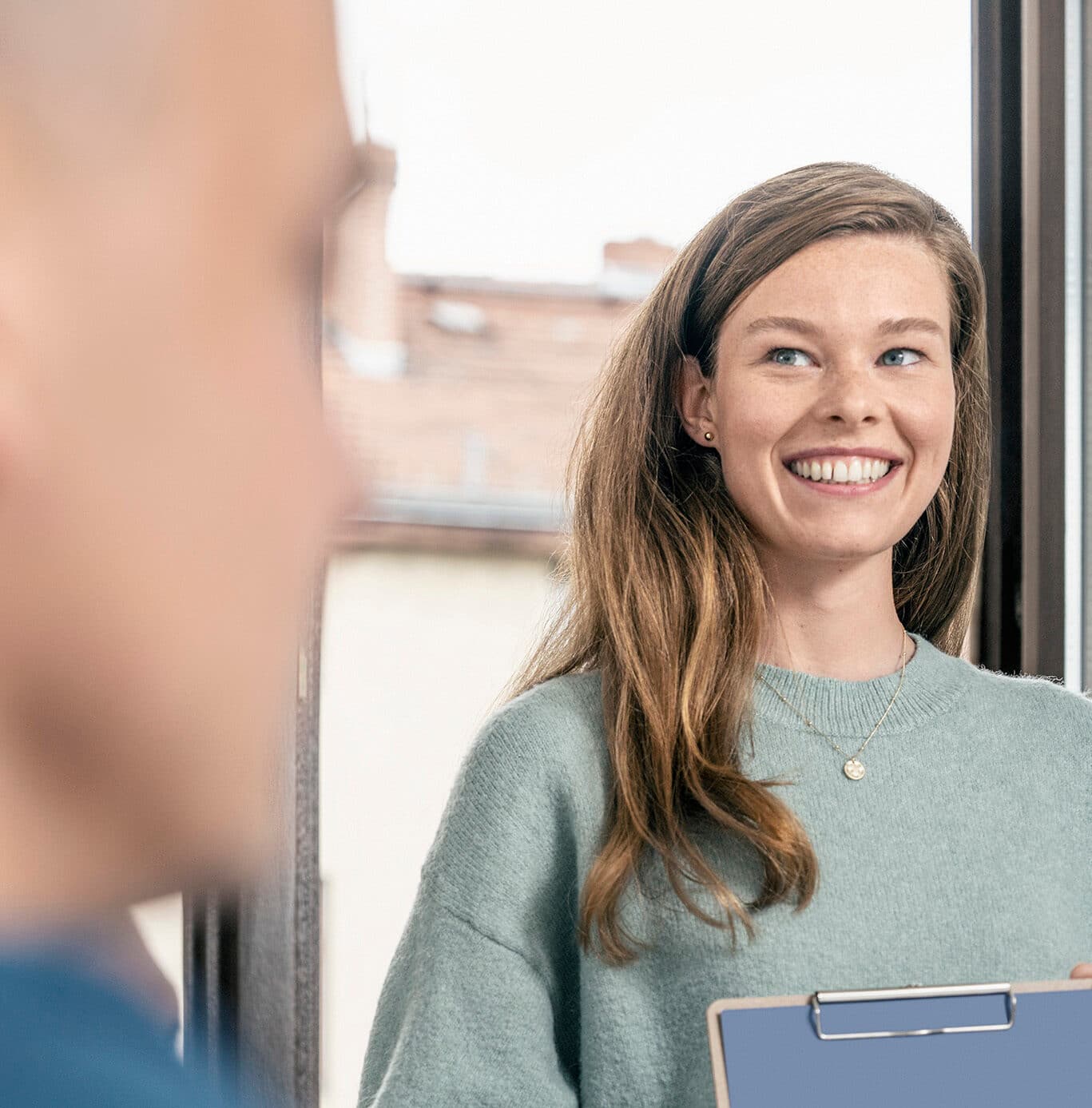 In einem zweistufigen Interview-Prozess lernen wir dich und deinen beruflichen Hintergrund kennen.